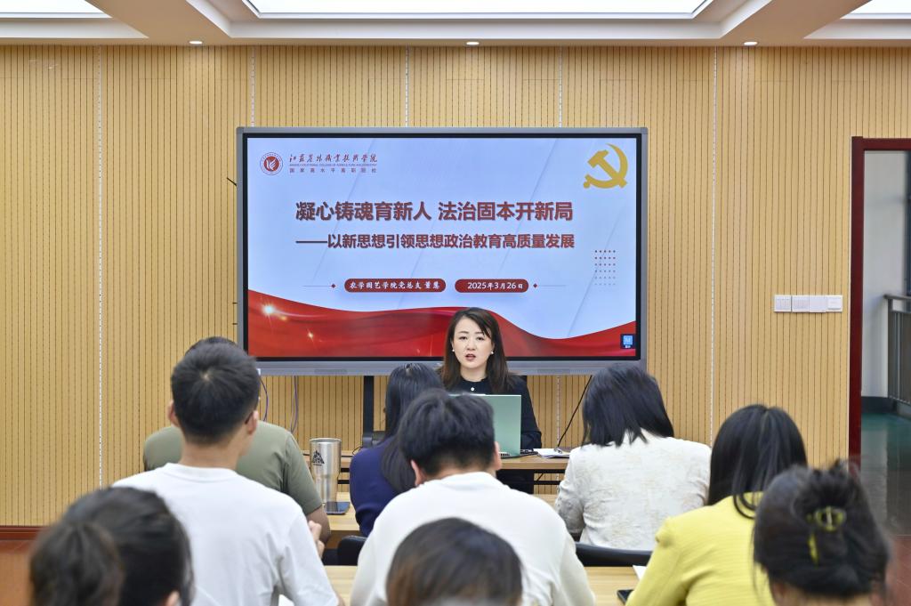 3月26日下午,农学园艺学院党总支副书记董慧以“凝心铸魂育新人,法治固本开新局”为主题,为学生党支部的党员教师与入党积极分子们讲授专题党课,进一步强化了党员们的思想政治意识,为推动学院工作高质量发展注入了强大动力。