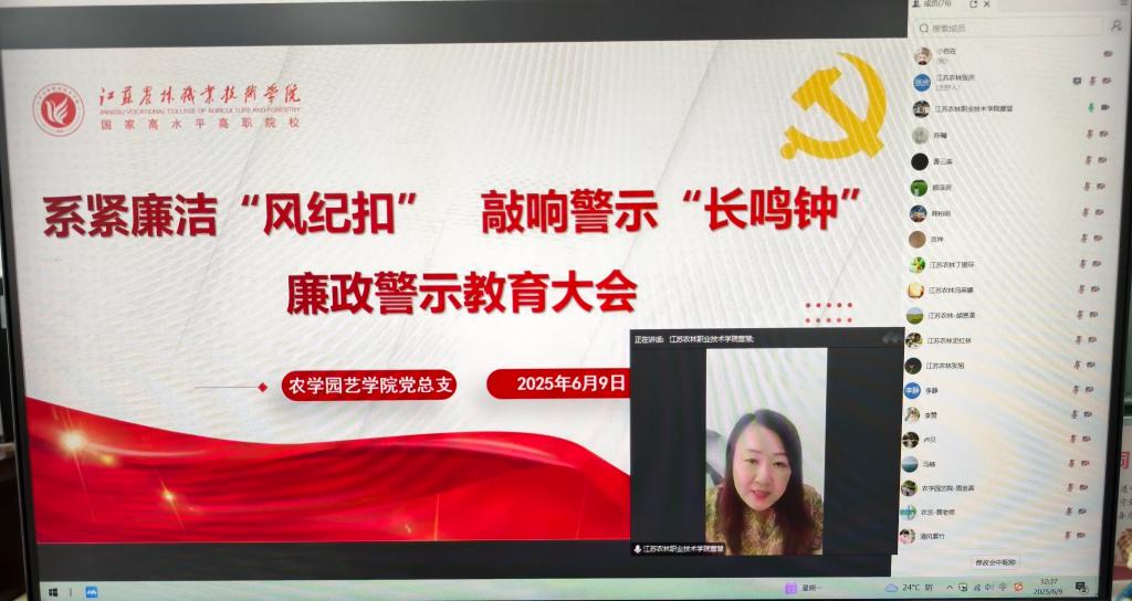 为深入学习贯彻习近平总书记关于全面从严治党的重要论述,全面落实新时代党的建设总要求,进一步强化教职工廉洁自律意识,6月9日中午,农学园艺学院党总支以线上形式召开“系紧廉洁‘风纪扣’,敲响警示‘长鸣钟’”廉政警示教育专题会议。学院党政领导班子成员及全体教职工通过视频连线参会,共筑拒腐防变思想堤坝,共绘清廉校园建设蓝图。